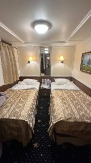 комфорт и уют: каюты оборудованы всем необходимым: мягкими кроватями (одно- и двуспальными), ванными комнатами с душевой кабиной, кондиционерами и телевизорами. Номера люкс имеют отдельную зону гостиной с диваном, креслом и журнальным столиком;